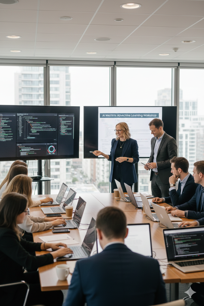 Our AI Boardroom Trainings are designed exclusively for Board Members and senior public leaders responsible for AI oversight. Delivered in one‑, two‑, or three‑day formats - or fully bespoke for individual organizations - these confidential sessions equip leaders with the clarity, competence, and sovereign control required to govern AI effectively.
